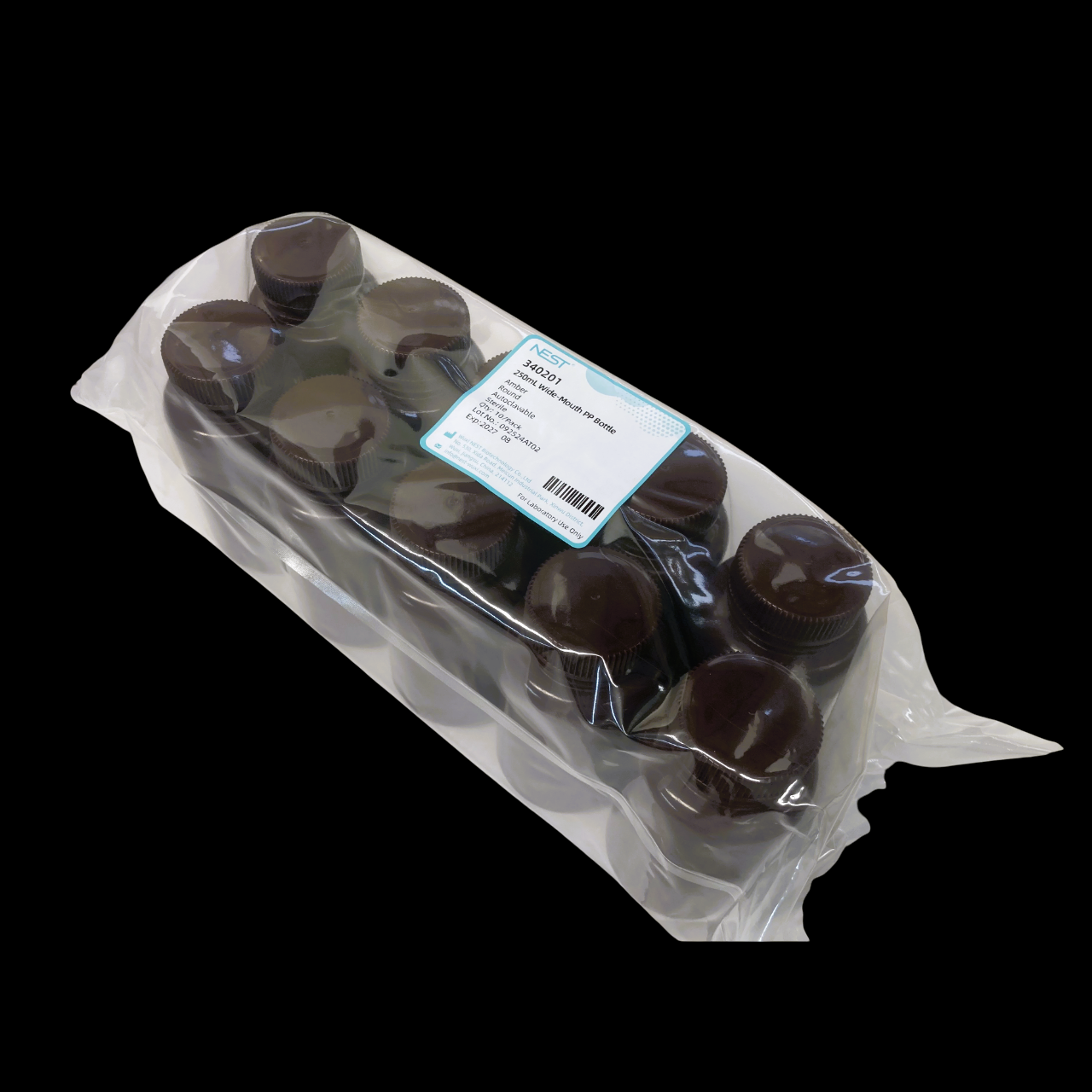 250 mL Round PP Storage Bottle, Amber, PP, Wide Mouth, Sterile, 10/pk, 100/cs 340201