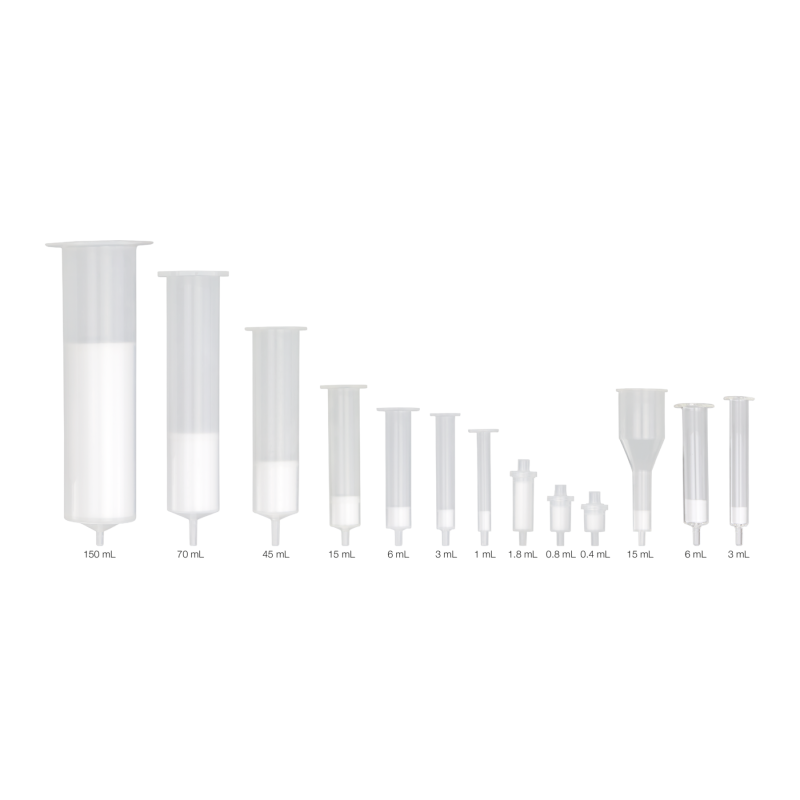 | Column shape | Open tubular syringe-shaped column with Luer tip outlet |