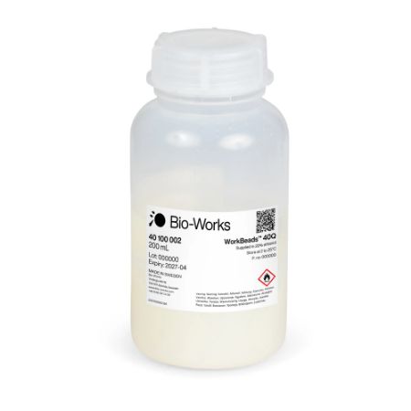 WorkBeadsTM resins for ion exchange chromatography are designed for research and industrial scale purification of proteins, peptides and oligonucleotides by utilizing the difference in their surface charge. These resins demonstrate high-resolution separation while giving low back-pressure to facilitate both capture and polishing purification applications in standard bioprocess columns.
