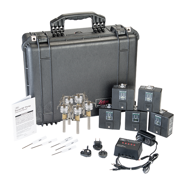 Escort ELF air sampling pumps feature a state of the art electronic laminar flow sensor to provide a constant flow control with ± 2.5% regulation of flow rate (from 1-3 lpm) with automatic compensation for changes in battery voltage, temperature, altitude, and sample load. An internal secondary standard calibrates the pump continuously and needs to checked against a primary standard only once per month (or every 200 hours for coal mine dust sampling).