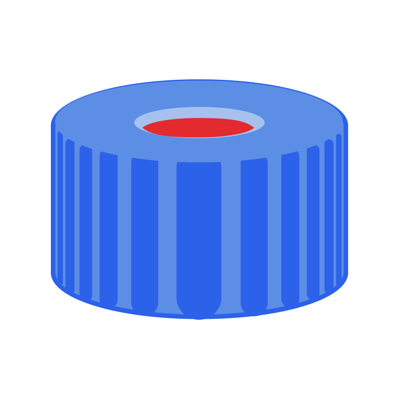 N 9 PP screw cap, blue, center hole, Natural Rubber red-orange/ETFE colorless Hardness: 45° shore A Thickness: 1.0 mm pack of 100
