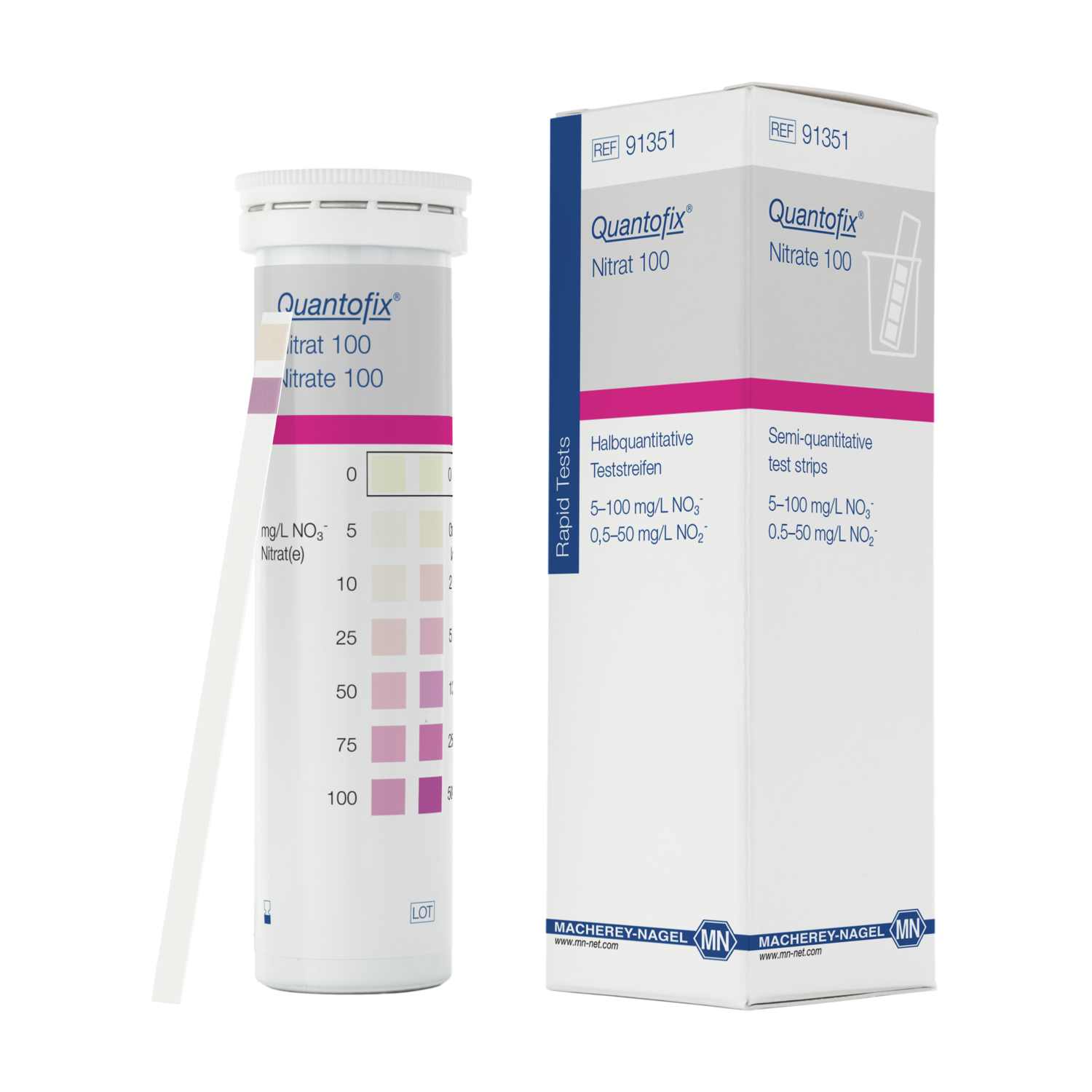 | Gradation | Nitrate - 0 • 5 • 10 • 25 • 50 • 75 • 100 mg/L NO₃⁻, Nitrite - 0 • 0.5 • 2 • 5 • 10 • 25 • 50 mg/L NO₂⁻ |