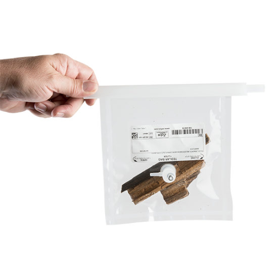 Used to collect bulk samples for off-gassing sampling, these bags have one end of the bag left open. Simply insert the item to be sampled, then seal using the provided clip for an air tight seal. Sampling of the off-gassing may be taken using the bags valve with built in septum.