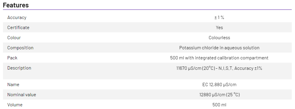 1x500 ml XS Conductivity Standard 12'880 µS/cm ± 1% / 25°C with N.I.S.T certificate 51100643