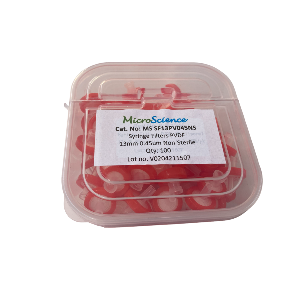 MicroScience Hydrophilic PVDF syringe filters are extremely versatile for a broad range of applications. PVDF syringe filters have low protein binding properties and are compatible with a very broad range of chemicals and most solvents.