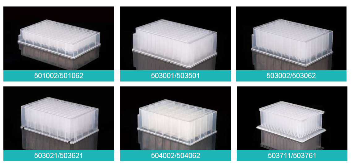 The length and width of the deep well plate comply with the SBS international standards. The depth of wells is increased based on the appearance and size of normal plates (mainly 96-well and 384-well plates) to enlarge the volume of each well. In addition, the manufacturing material (currently mostly used is polypropylene (PP)) is changed and the surface treatment process has been improved for this series of deep well plates to adapt to its specific use range. The deep well plates of NEST have a variety of specifications, conforming with the needs of fully automatic workstations and experiments.