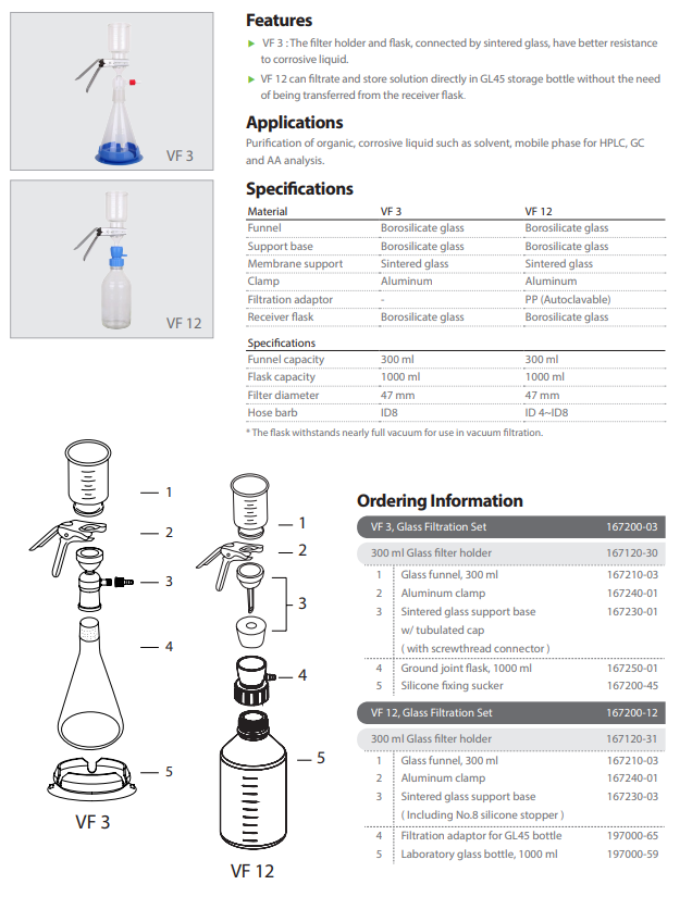 | 167200-12 | VF 12, Glass Filtration Set (1-5) |
