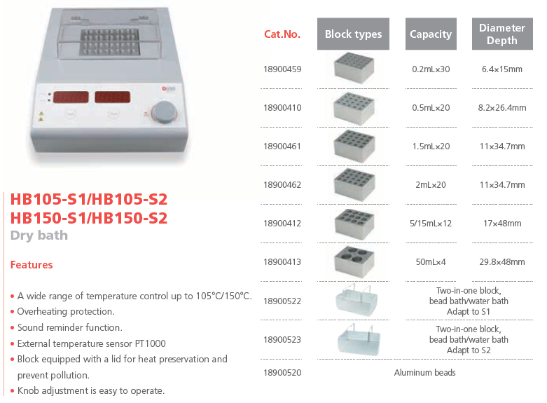 Heating block, used for 2mL tubes, 20 holes , Accessories of Dry Bath HB105-S1/S2&HB150-S1/S2, 18900462