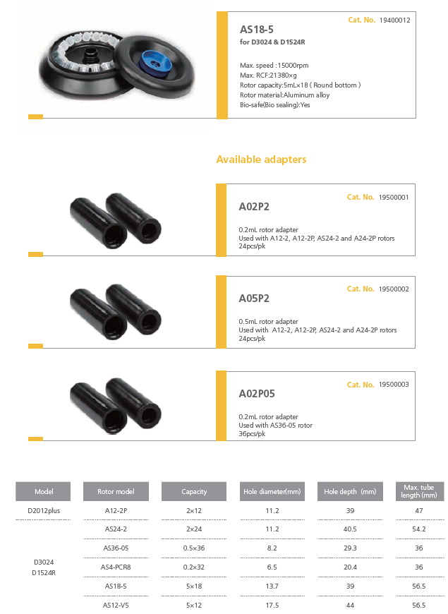 2ml to 0.5ml rotor adapter, used with A12-2, A12-2P, AS24-2 and A24-2P rotors,24pcs/pk