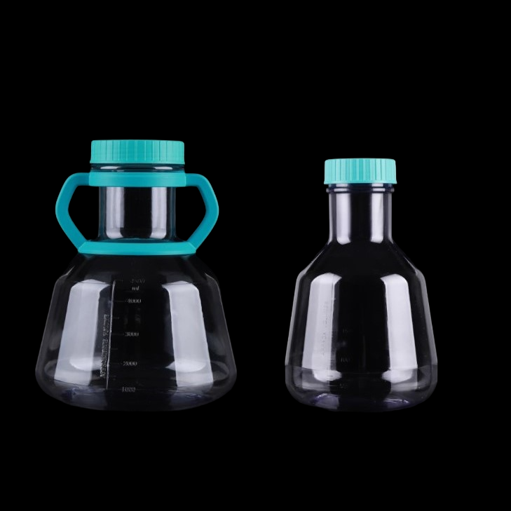 The bottom diameter of the 3-L wild-mouth high-efficiency Erlenmeyer flask is consistent with that of the 3-L high-efficiency Erlenmeyer flask, and its mouth diameter adopts the neck size of the 5-L high-efficiency Erlenmeyer flask, which not only saves space usage, but also increase oxygen flux, so as to increase the efficiency of cell culture.