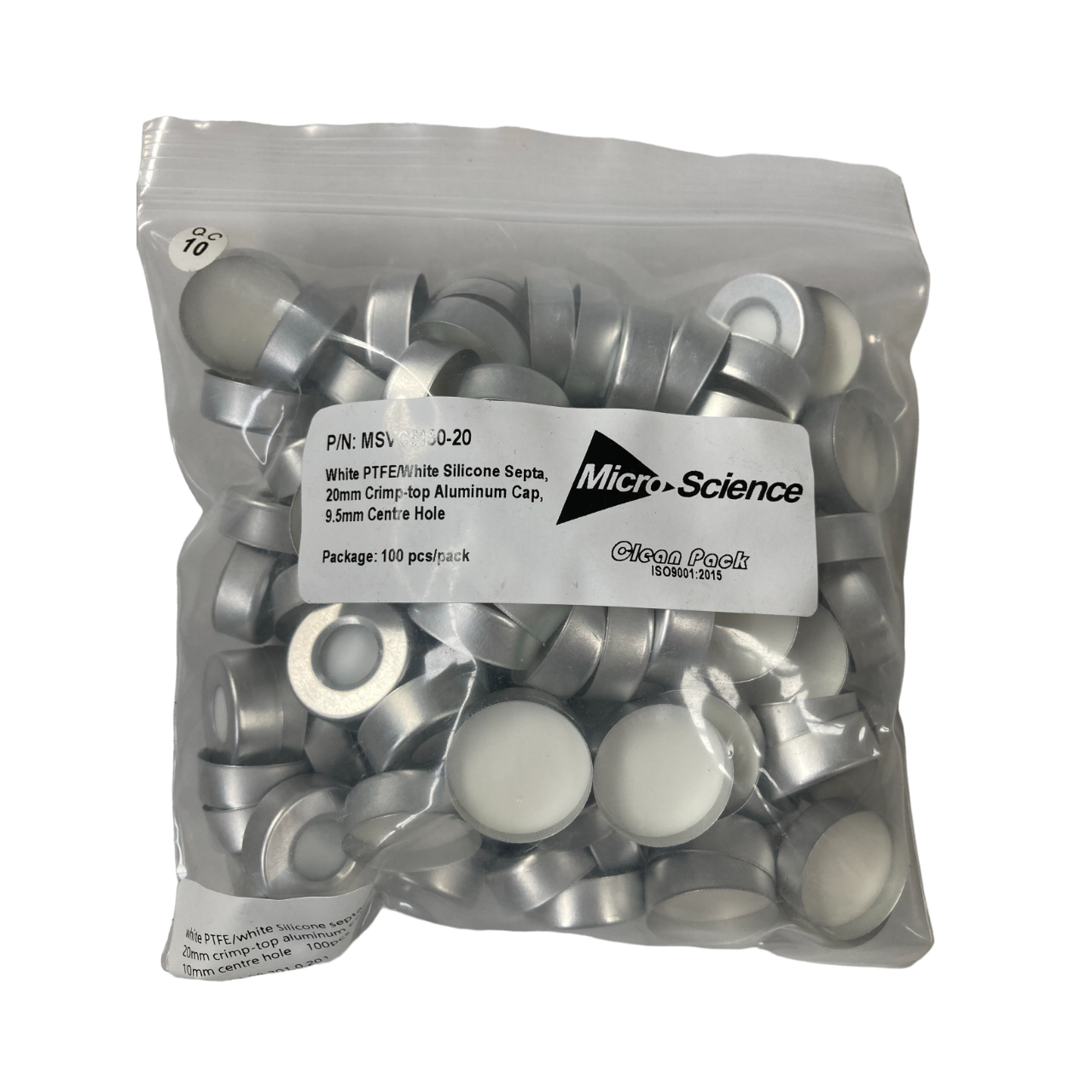 20mm Crimp Top Aluminum seal PTFE/Silicone Septa , pk100, MSVC5150-20(100)