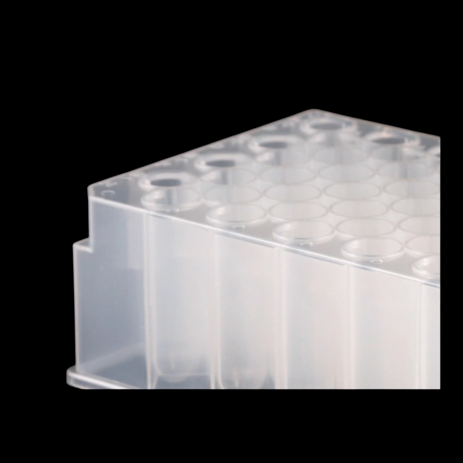 The length and width of the deep well plate comply with the SBS international standards. The depth of wells is increased based on the appearance and size of normal plates (mainly 96-well and 384-well plates) to enlarge the volume of each well. In addition, the manufacturing material (currently mostly used is polypropylene (PP)) is changed and the surface treatment process has been improved for this series of deep well plates to adapt to its specific use range. The deep well plates of NEST have a variety of specifications, conforming with the needs of fully automatic workstations and experiments.