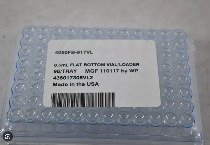 Glass Flat Bottom Vials in Vial Loader Vial loader is fast and convenient for loading vials into the Base Plate. To use the vial loader: Peel away the packaging and place an empty Base Plate on top of the vial loader. Invert the entire unit and the plate is ready to use.