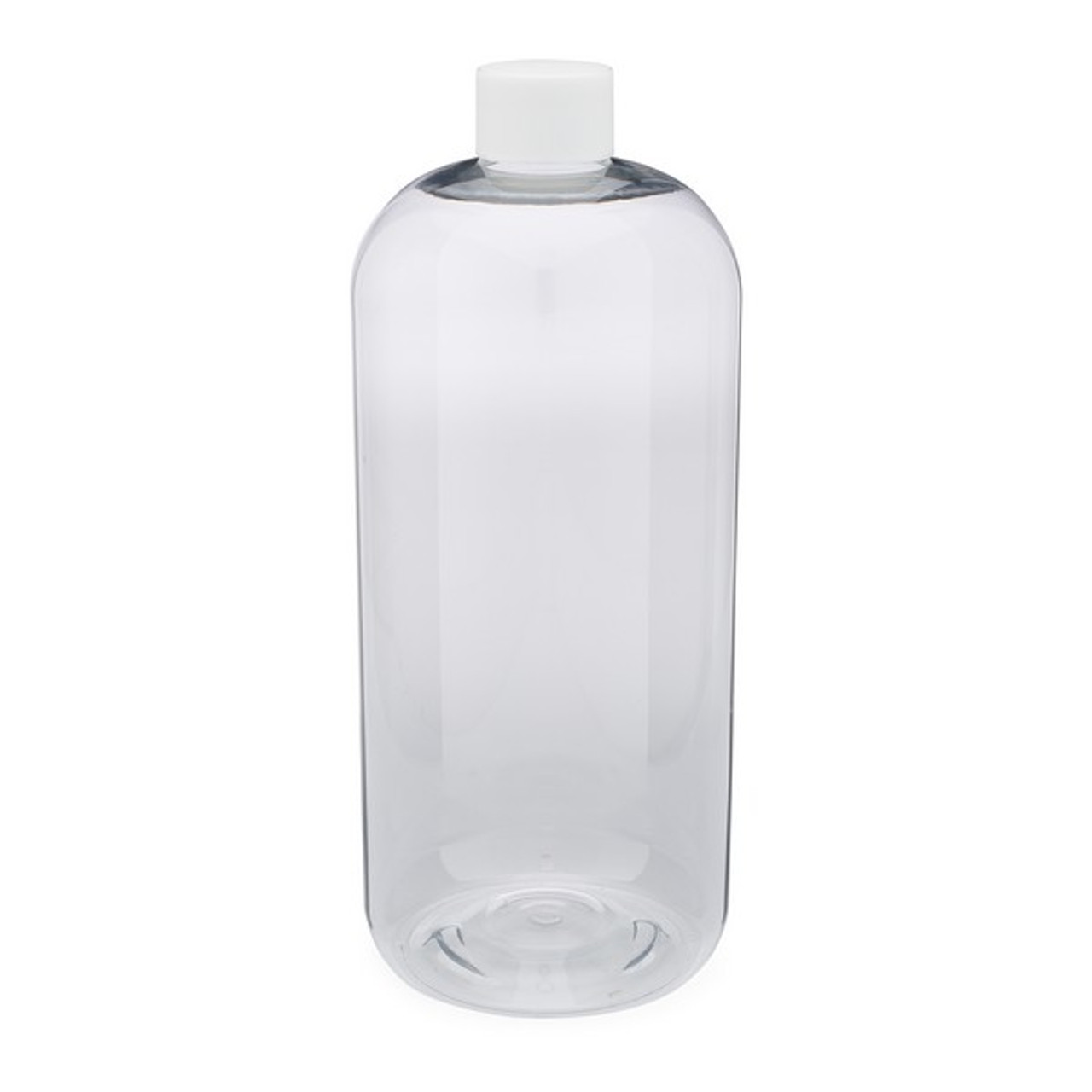Precleaned - 32 oz, 1000mL Clear Boston Round, 94x206mm, 33-400mm Thread, White Closure, PTFE Lined