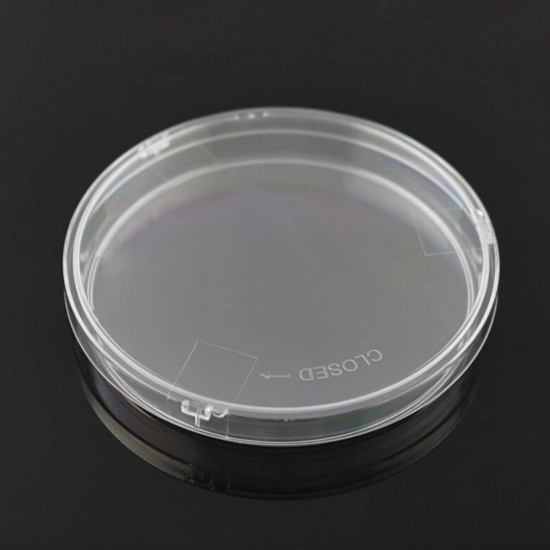 NEST Petri dish with safelock design has several protrusions on the top circumference of the dish body, and several buckles corresponding to the protrusions on the inner circumference of the cover; The lower end of each buckle is designed with a slope surface, and the upper end is designed with a card slot that allows the protrusion to slide into. After the medium is filled, turn the dish lid clockwise, and screw it into lock position to realize the lock function. This unique structural design ensures that the lid and the bottom of the dish will not fall off automatically during the experiment, avoiding contamination.