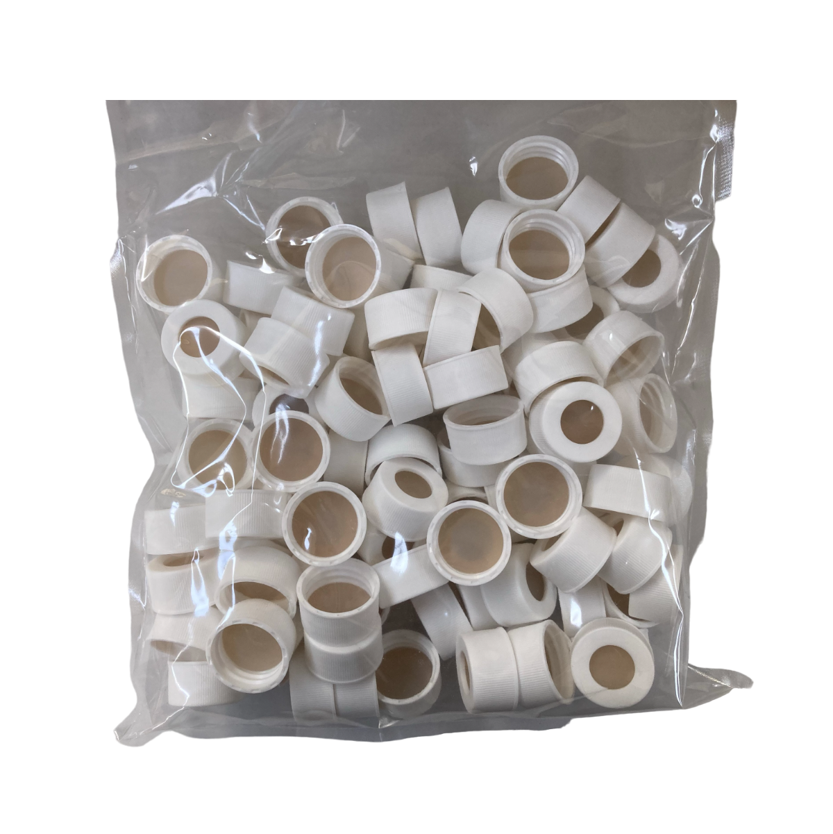 White 24mm Pre assembled screw cap with PTFE/Sil septa Packet 100
