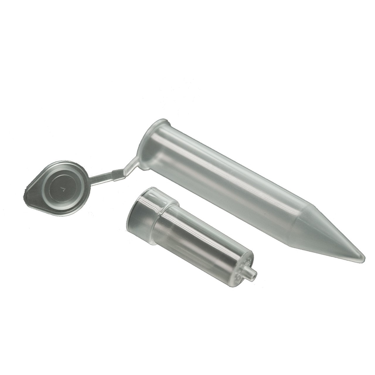 Centrifuge filters are very useful for small volume sample filtration.  Designed for use in centrifuges, the filter units consist of a sample chamber and a receiver tube.  Various membranes are available for bacteria removal, particle removal, HPLC sample preparation, removal of cells from media and DNA removal from agarose or acrylamide gels.  The tube has a marking area and is graduated.  A cap serves the dual purpose of capping the sample chamber during the centrifugation and the receiver tube after the sample chamber has been removed.