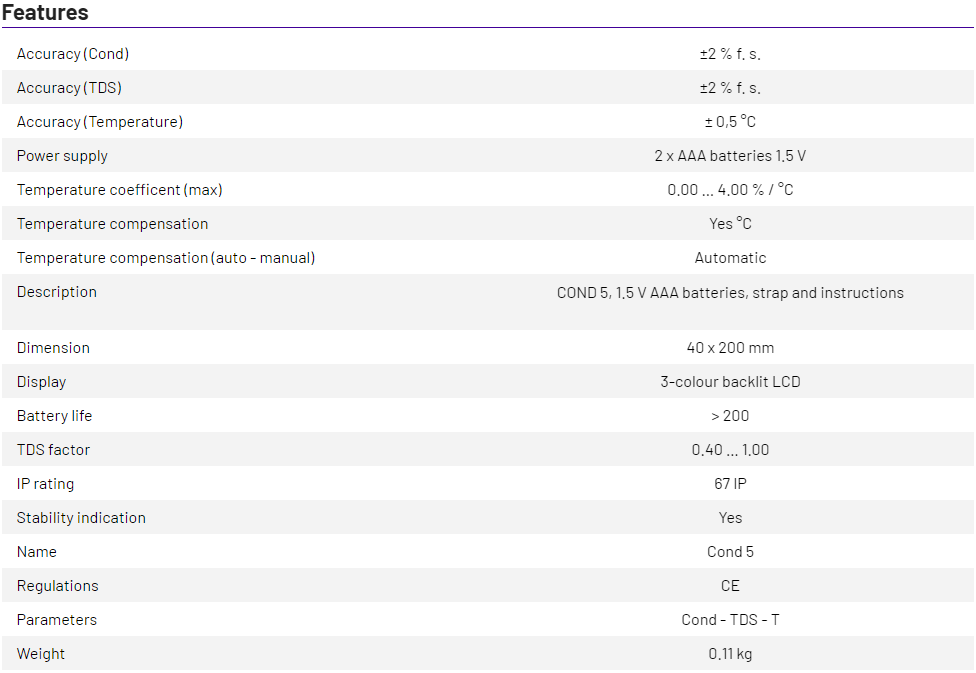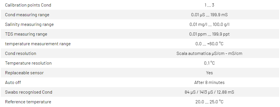 Salinity 0.1 mg /l...100 g/l; °C: 0.0...60.0 (0.1 °C)