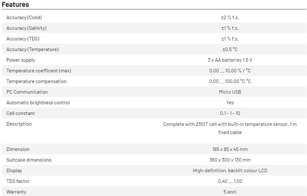 Salinity: 0.1 ppm ... 100 pptTDS: 0.01 mg / l ... 200 g / l