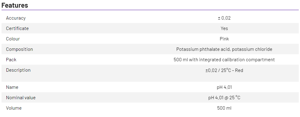 XS Professional 1X500ml pH 4.01 ±0.01@25°C, with DAkkS Certificate 51300103