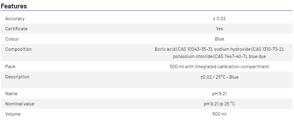 1X500ml XS Professional pH 9.21 ±0.02@25°C, with DAkkS Certificate
