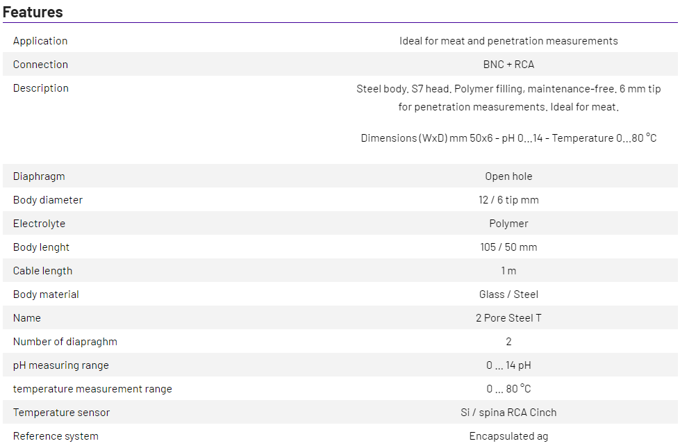 Thanks to 6 mm tip is ideal for meats. For penetration measurements.