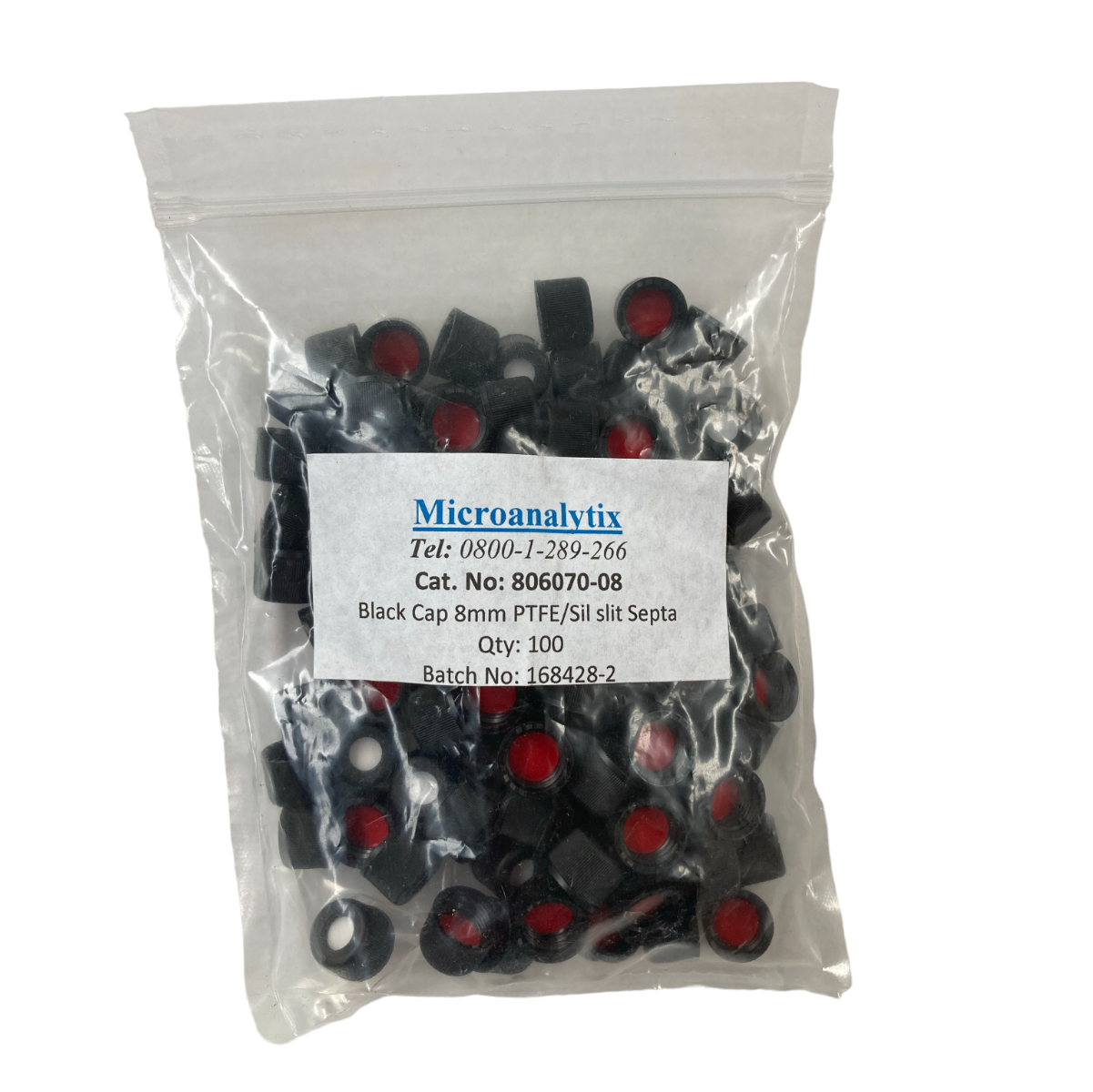 8-425mm Black Open Hole Polypropylene Closure, Red PTFE/Silicone Septa, 0.060” with Slit MSVC806070-08(100)