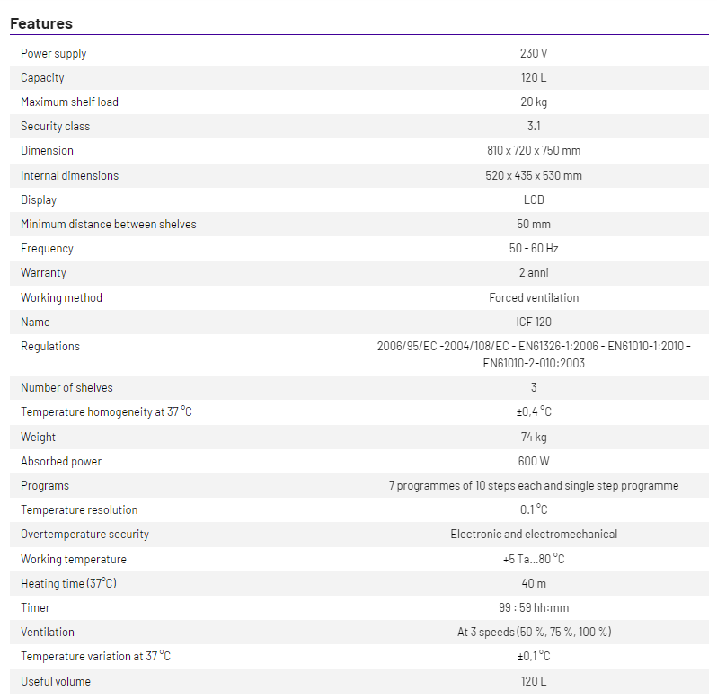 Temperature variation at 37 °C: ± 0.3 °C, uniformity of the temperature at 37 °C: ± 0.4 °C.