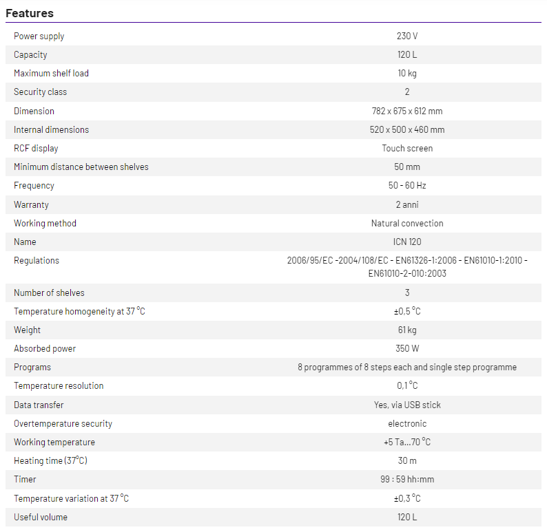 Temperature variation at 37 °C: ± 0.3 °C, uniformity of the temperature at 37 °C: ± 0.4 °C.