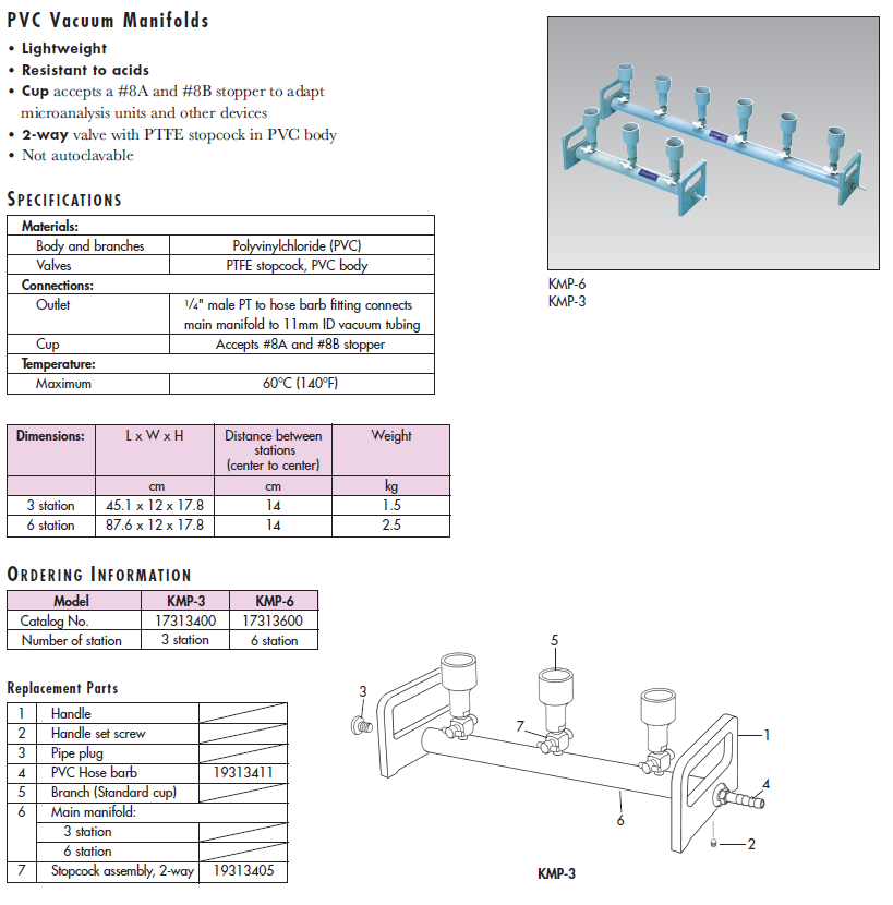 KMP-6 MANIFOLD PVC Vacuum Maniofolds
