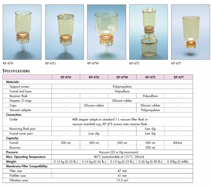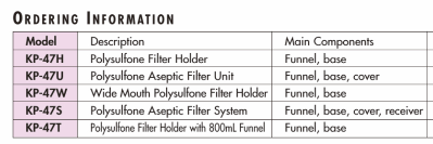 Filtration Equipment KP47W Filter Funnel, KP-47W POLYSULFONE, 500ML , (was 501050), 43301050