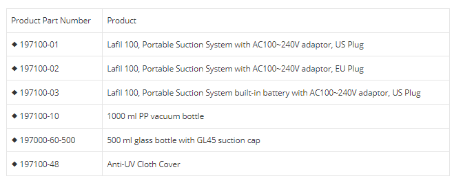 Portable Suction System Ordering Information :