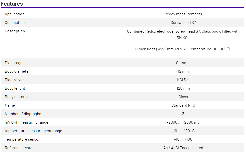 S7 Head Screw Redox combined electrode. Glass Body. Temperature -10 ... 100 °C. Filling KCl 3M.