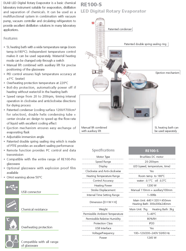RE100-S 1200cm²package, Rotary Evaporator, glassware vertical +condenser 18900476+LED heating bath 18101888 6030120220+18900476