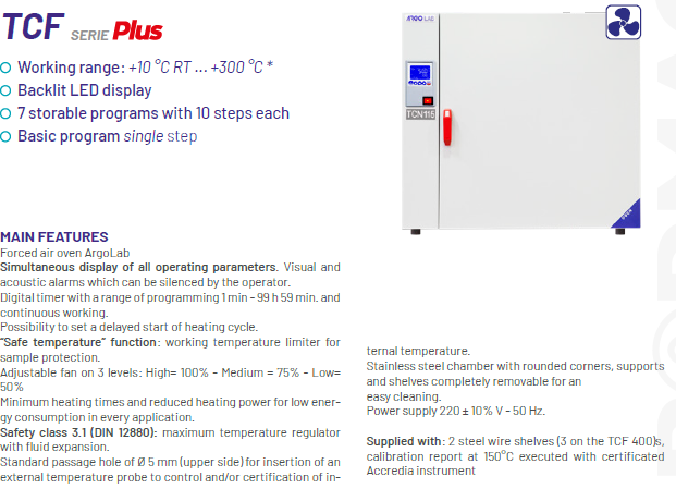 Temperature limiter adjustable work by the operator for the protection of the samples (function 'safe temperature').