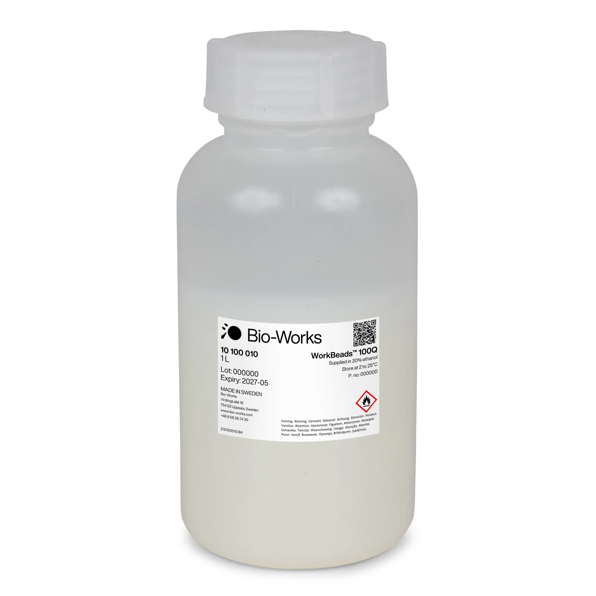 WorkBeads 100Q is an agarose-based chromatographic resin manufactured using a proprietary method that results in porous beads with a tight size distribution and exceptional mechanical stability. Agarose based matrices have been successfully used for decades in biotechnology purification, from research to production scale, due to their exceptional compatibility with biomolecules including proteins, peptides, nucleic acids and carbohydrates. WorkBeads resins are designed for separations requiring optimal capacity and purity. WorkBeads 100Q is a strong anion exchanger derivatized with quarternary amines as functional groups.
