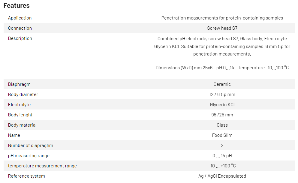 Dimensions (LXØ) 25x6 mm. Fill with KCl Glycerin electrolyte for samples containing proteins.