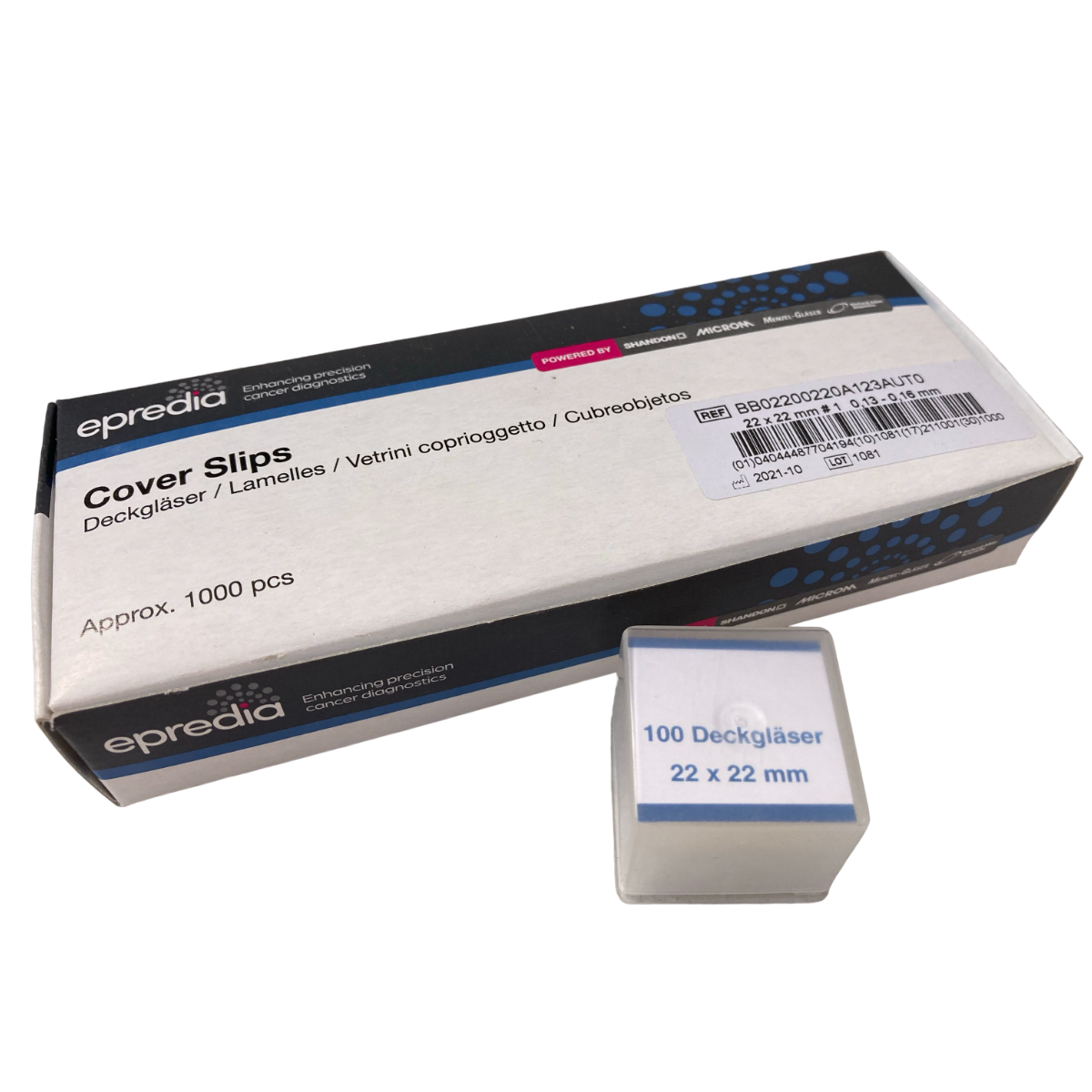 Coverslip 22x22mm Grade 1.0, pk100, Deckglaser CS22X22-1