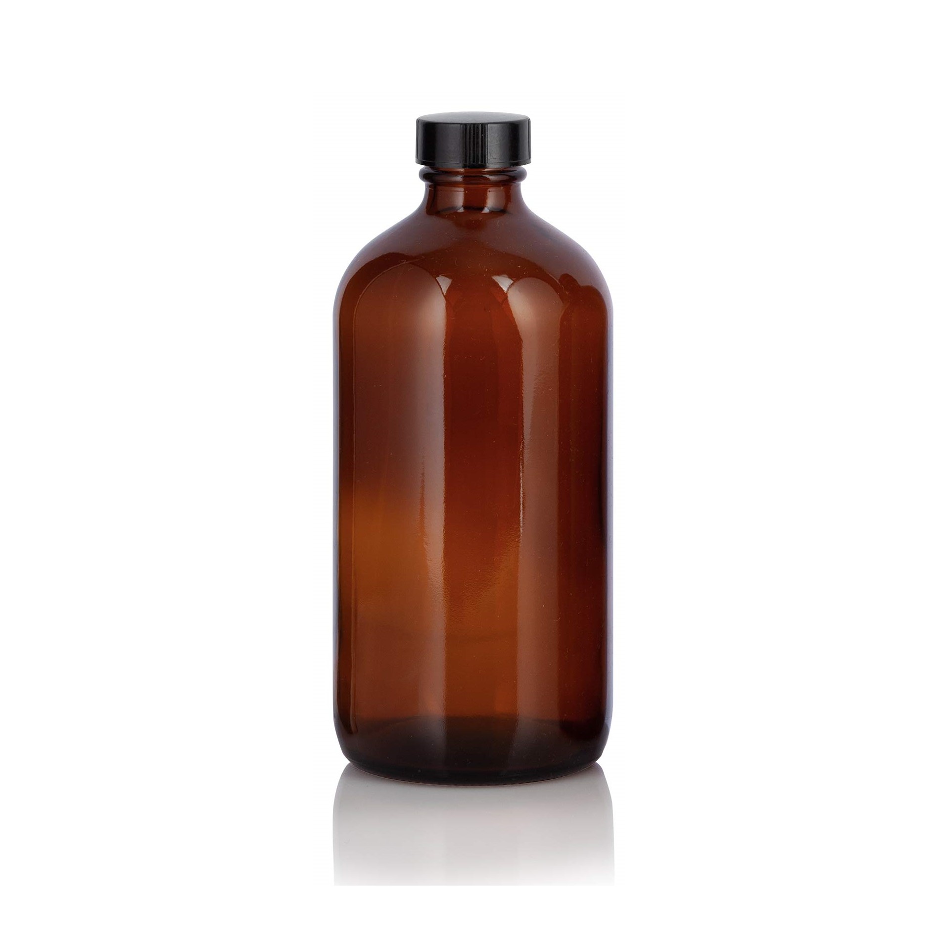 16 oz, 500mL Amber Boston Round, 75x168mm, 28-400mm Thread, Phenolic Closure/PE Cone Lined