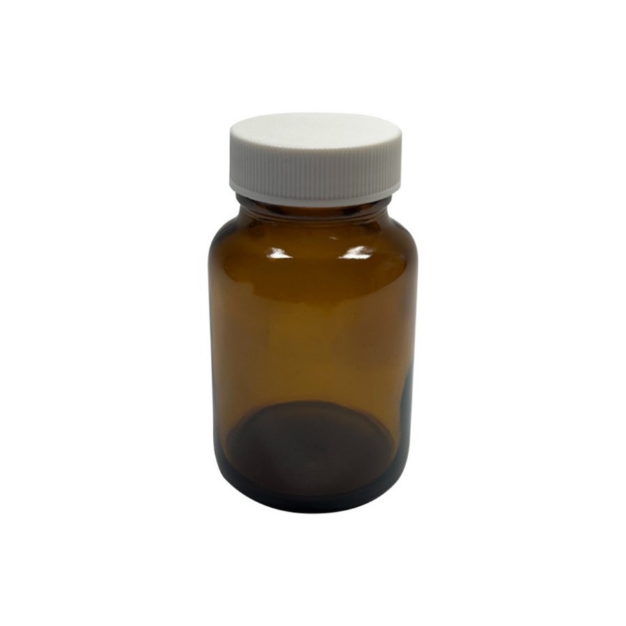Amber Wide Mouth Packers with Assembled White Polypropylene Closure, Unlined