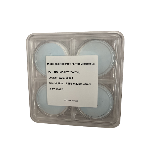 PTFE membrane filters are available with and without a laminated polypropylene support, PTFE. Inherently hydrophobic, PTFE will not absorb moisture from air or gases, making it ideal for venting applications, phase and aerosol samplings.