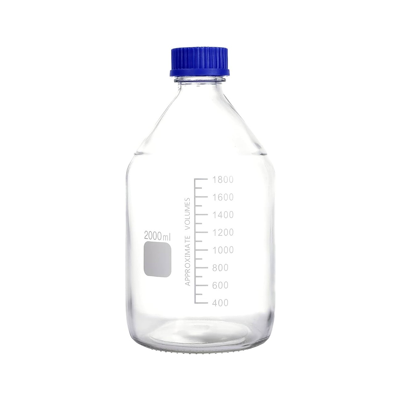 Lab Bottle Schott type clear Glass w/Blue GL45 Screw Lid 2000ml