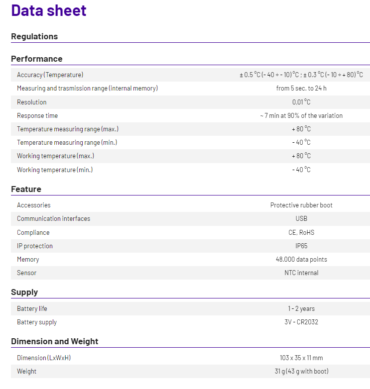 The MINI T1 Data Logger is equipped with an external pointed steel probe,