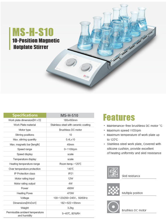 MS-H-S10 10-Position Magnetic Hotplate Stirrer
