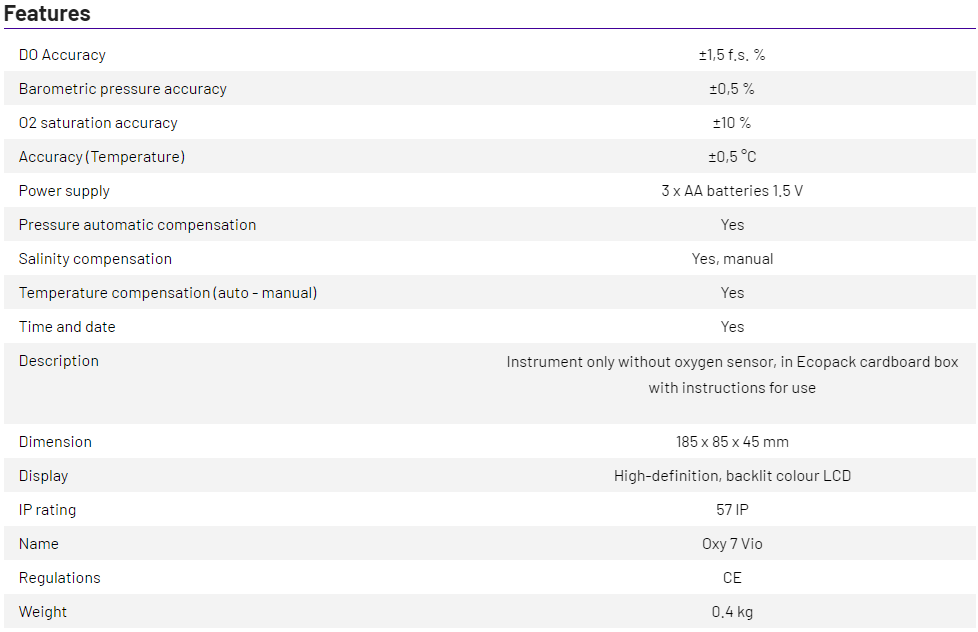 Automatic compensation for temperature and air pressure, manual salinity.