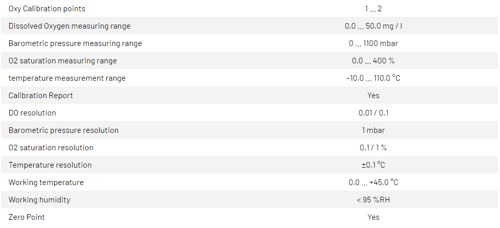 Dissolved oxygen measurement,% saturation, atmospheric pressure, and temperature display.