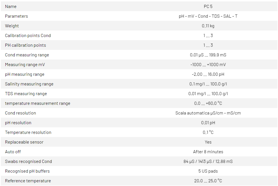 3-point button calibration with 5 USA buffer values ??for accuracy of ± 0.01 pH. Read mV for pH electrode diagnosis.