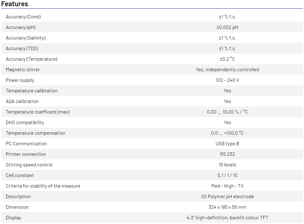 PC 8 PRO  kit STIRRER with pH electrode XS Polymer, conductivity cell 2301T with ATC. Cable S7/BNC, 50104142