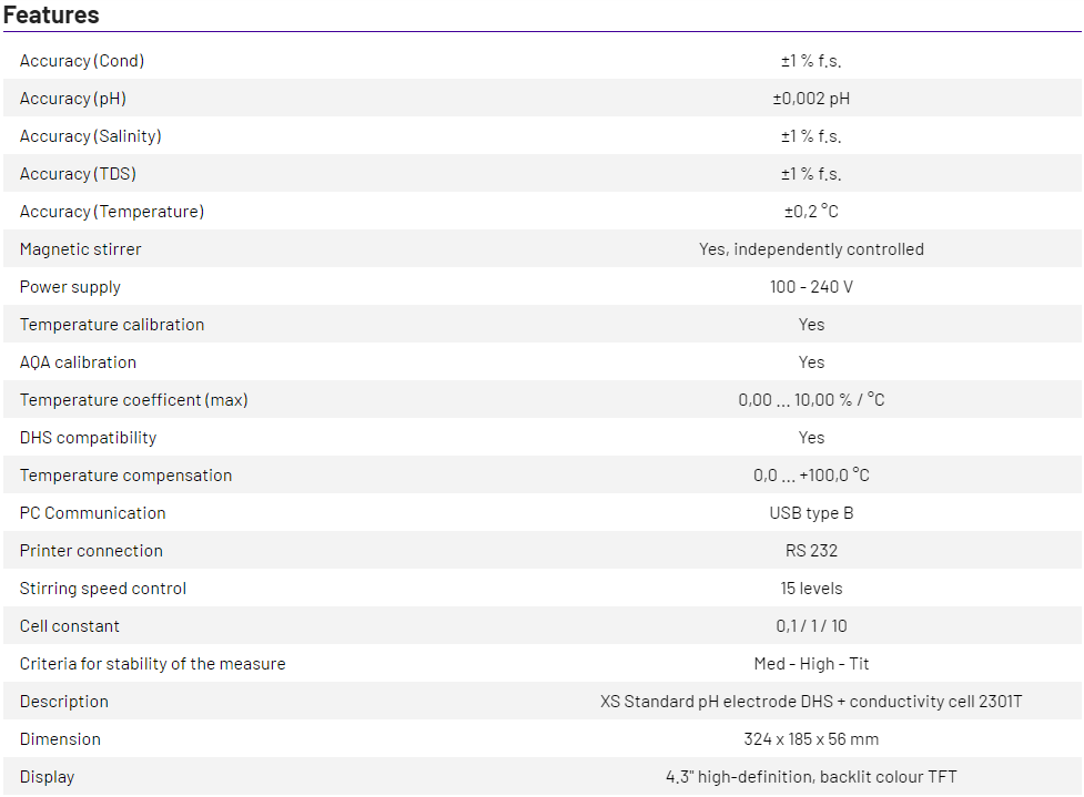 PC 8 PRO kit STIRRER with pH electrode XS STANDARD T BNC DHS, conductivity cell 2301T with ATC.