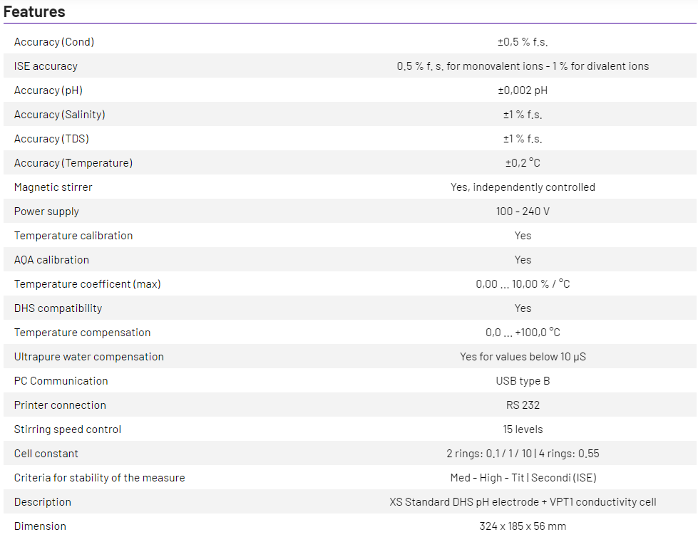 Supplied as standard: Magnetic stirrer, S7/BNC cable, NT 55 temperature probe, electrode holder stand, colored buffer solutions, external keypad, USB cable and multi socket power supply.